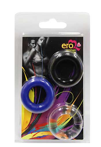 Набор из трех эрекционных колец. Комплект из 3-х колец станет отличным дополнением коллекции эротических игрушек. Колечки разных цветов можно надевать как одновременно, так и по отдельности. Безопасный и суперэластичный материал подходит на все размеры и используется с любрикантами на любой основе. Не забывайте, сначала одеваем кольцо, затем наносим любрикант. Материал: TPR (термопластичная резина).Цвет: Прозрачный, синий, черный. Размер: внутренний диаметр колец - 1.75 см., великолепная эластичность позволяет использовать насадки всем мужчинам без исключения, независимо от размеров пениса. Вес изделия 0,012 кг. Не имеет срока годности. Не подлежит сертификации. Страна производства Китай.