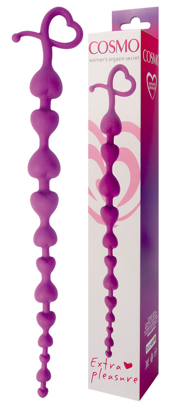 Хотите разнообразить свою интимную жизнь. Анальная цепочка линейки COSMO поможет вам в этом. Эта игрушка длиной 280 мм настоящий источник сексуального удовольствия и средство достижения оргазма. Изделие состоит из нескольких соединенных вместе элементов диаметром 16-20-27 мм и специального кольца-ограничителя, предназначенного для контроля за глубиной проникновения. Размер цепочки позволяет вводить ее на различную длину, в зависимости от предпочтений владельца. Различный размер элементов игрушки предназначен как для непосредственной стимуляции, так и для подготовки к анальному сексу - растягивает и расслабляет мышцы сфинктера. Цепочка изготовлена из совершенно безопасного для здоровья гипоаллергенного силикона. Имеет приятную на ощупь матовую текстуру и привлекательную цветовую гамму. В процессе эксплуатации рекомендуется приобрести специальный лубрикант для секс-игрушек SEXTOYS из серии ТЫ и Я и очищающий спрей с антимикробным эффектом CLEARTOY для экспресс-обработки.