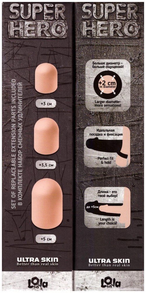 Увеличить длину и диаметр члена без операций возможно. Насадка от Lola Toys с легкостью справится с этой задачей. С набором сменных удлинителей Вы сами решаете, насколько глубоким будет Ваш секс. В комплекте с насадкой Вы получаете три удлинителя: 3, 3,5 и 5 см. Super Hero подарит тесный контакт и яркие эмоции, увеличив диаметр члена до 2 см. Нежный эластичный материал Neoskin обеспечит плотный обхват, надежно прилегая к члену, как вторая кожа. Для доп. фиксации насадка имеет петлю для крепления под мошонкой. Размер и объем петли позволят удерживать насадку и обеспечат чувственную стимуляцию, сделав акт продолжительнее. Общая длина насадки - 22 см. диаметр - 4,5 см, длина внутреннего тоннеля - 22 см, диаметр в нерастянутом состоянии - 2,3 см. Упаковка - картонная коробка с принтом. Производитель: Lola Toys Super Hero. Упаковка: Коробка. Габариты упаковки: 32-10-6,8. Внутренний диаметр: 2,3. Внешний диаметр: 4,5. Страна: Россия. Веб брутто: 381 гр. Вибрация: Нет. Общая длина: 22. Цвет: Телесный. Материал: ТПЕ. Коллекция: Super Hero.