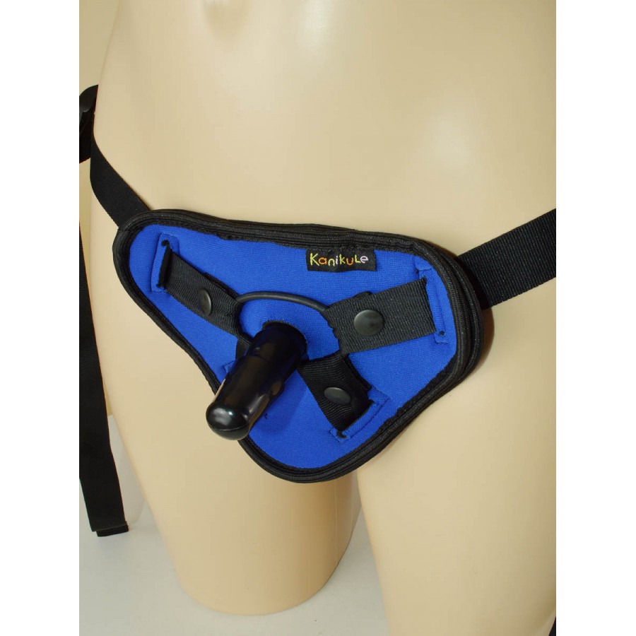 Трусики (р-р 40-50) синего цвета с черной оторочкой изготовлены из высококачественной неопрена толщиной 3 мм, длинные ремни легко регулируются при помощи пластиковых пряжек. Страпон подойдёт, как для начинающих, так и для опытных пар и лесби практикующих бдсм. С даннымы трусиками можно использовать насадку-фаллос под коннектор (с отверстием внутри). Длина коннектора около 8 см, ø 20 мм. В качестве насадок могут использоваться фаллоимитаторы или анальные пробки. Благодаря мягкому и пористому неопрену, девайс плотно, но нежно прилегает к телу, предотвращает натирание и не допускает нарушения кровообращения